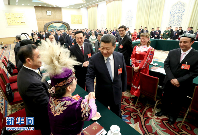 3月10日上午,人民大会堂新疆厅,习近平参加新疆代表团审议。